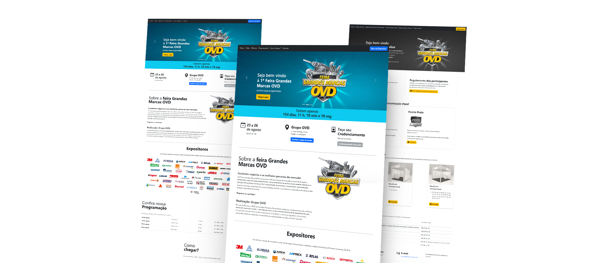 Era necessário, dois cenários: um para os convidados e outro para os expositores, sendo na interface focada nos convidados, destacando highlights do evento, informações, locais, link para credenciamento.